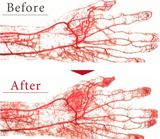 血流が良くなると、体温が上がり筋肉が柔らかくなり、ガチガチのコリ、冷え、むくみ、その他、様々な症状が改善されます。